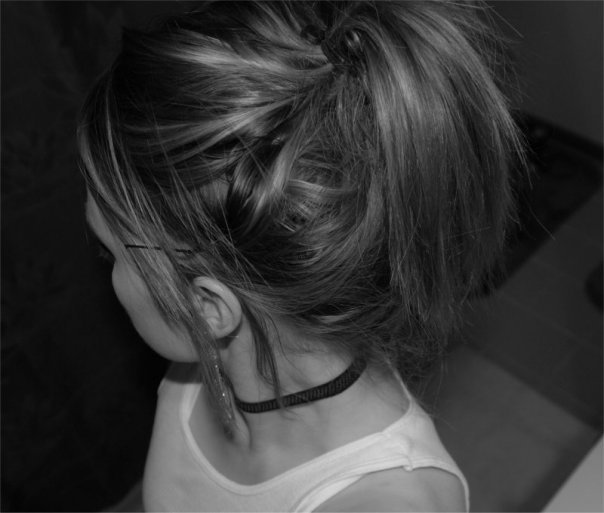 1. 90 percent of the time, my hair is in a ponytail. I went the short hair route for a couple of years and now I'm in the process of growing it out for our upcoming wedding. Also, most days I hit the gym after work, so I don't really bother with cutesy hair in the morning because let's face it, I'd rather sip coffee and surf the web in my pajamas than curl my hair.